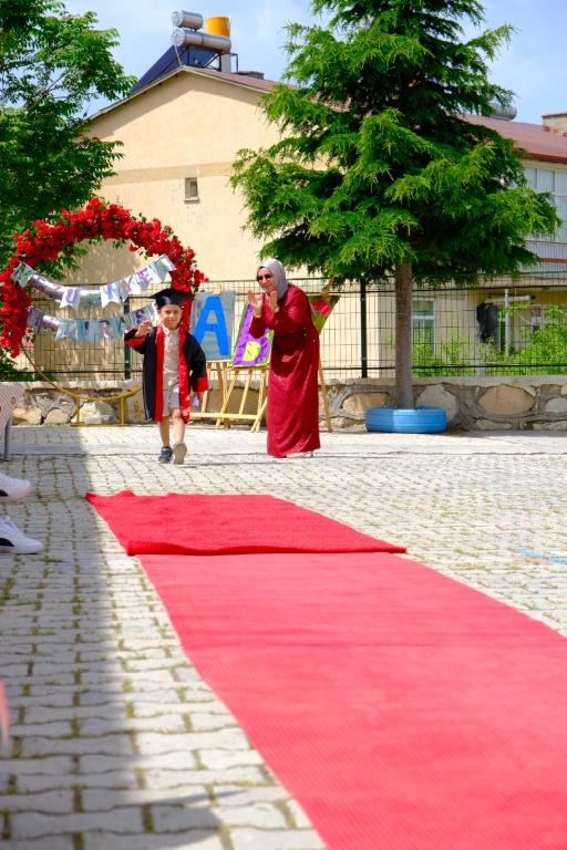 Okulumuz beş yaş öğrencileri için mezuniyet töreni düzenledik. Kep ve cübblerini giyen öğrencilerimiz öğretmenlerinden katılım belgelerini alarak kırmızı halıda yürüdüler. Bundan sonraki eğitim öğretim hayatlarında başarılar diliyoruz.