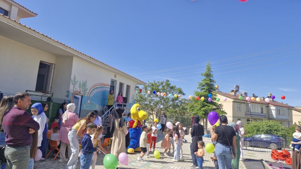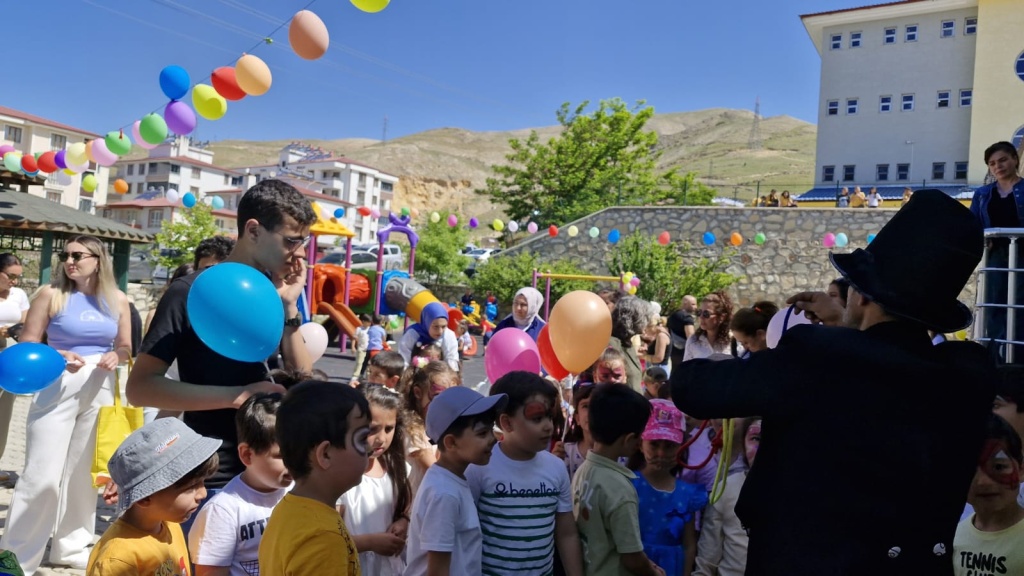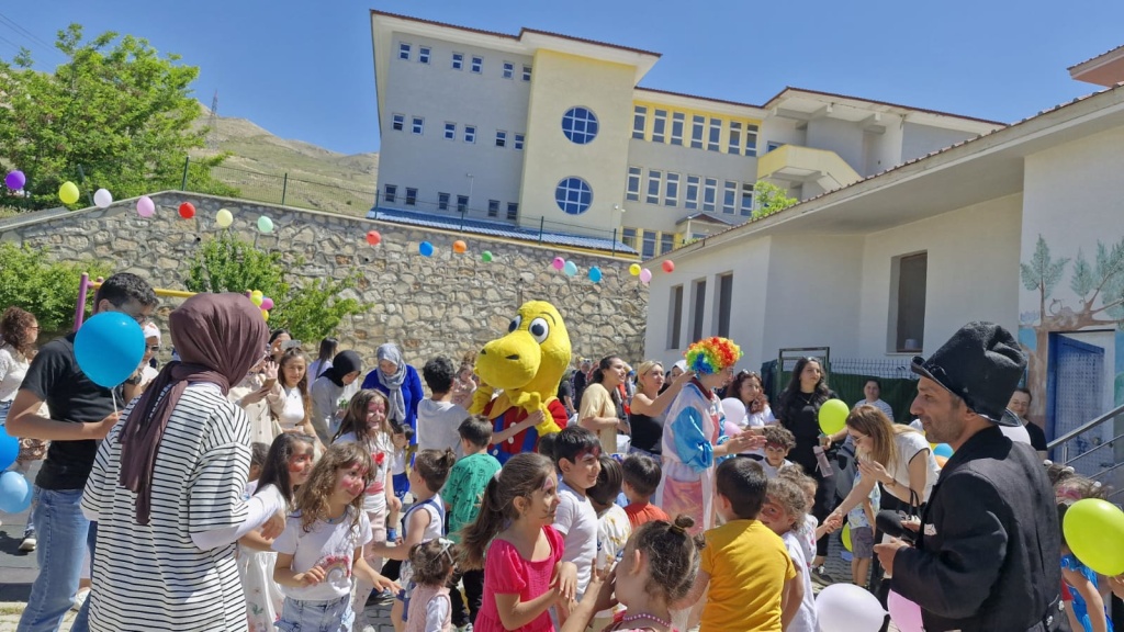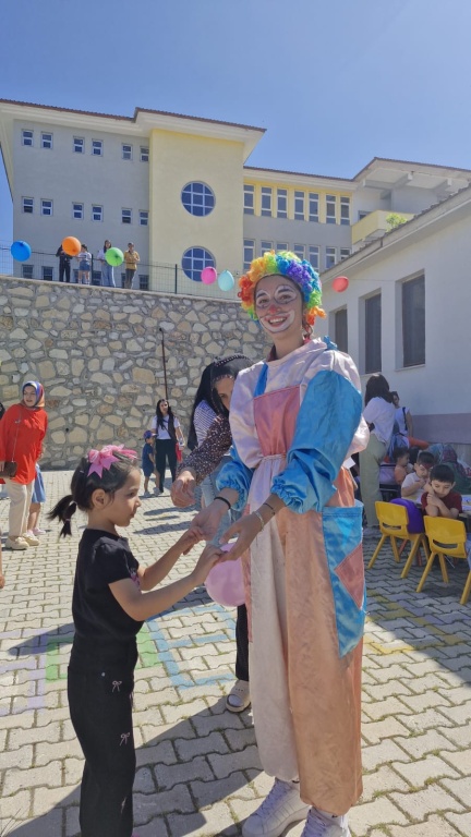 Okulumuz bahçesinde düzenlediğimiz şenlikte palyaço ve sevimli kostüm eşliğinde öğrencilerimiz oyunlar oynayıp dans ettiler. Kurduğumuz etkinlik masalarında; yüz boyama, oyun hamuru yapma, balon şişirme, boyama yapma gibi etkinlikler ile güzel zaman geçirdiler. Etkinlik sonrası öğrencilerimize pamuk şekeri dağıtıldı. Halaylar eşliğinde etkiniğimiz sone erdi.